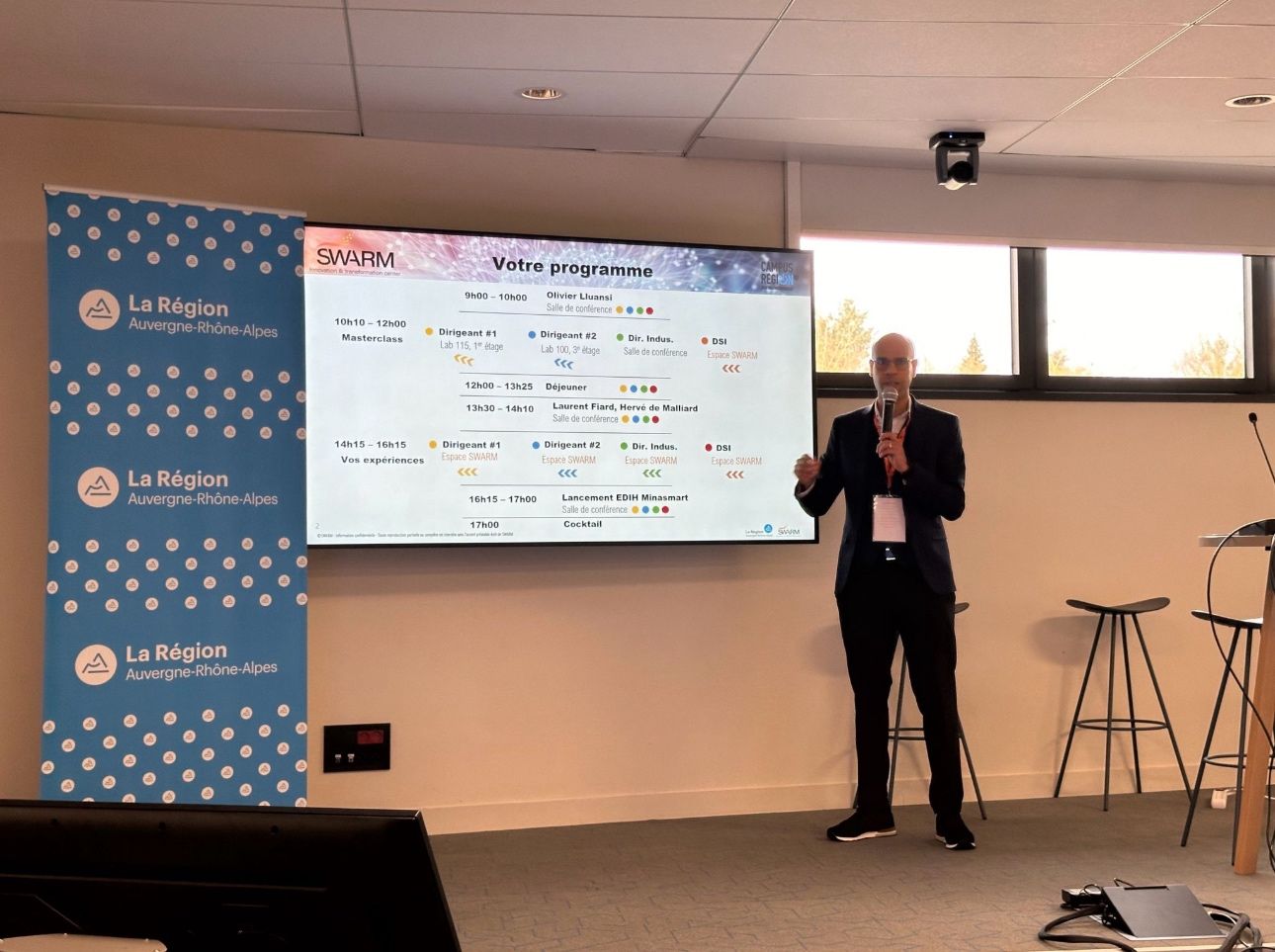 Nous poursuivons dans des ateliers par thèmes sur les grands enjeux de l’industrie. Cet après-midi, Laurent Fiard nous présente le nouveau « Baromètre de la transformation digitale des PME et ETI industrielles » de Visiativ. Je témoignerai avec lui de ces tendances avec le cas pratique de MGA Technologies et les acteurs de SWARM-itc.